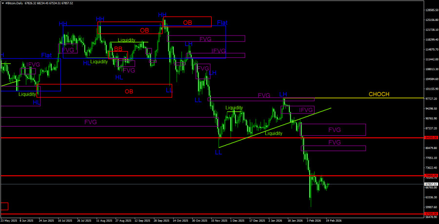 Торговые рекомендации по Биткоину(Bitcoin) на 20 февраля по системе ICT.