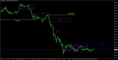 CHOCH – слом трендовой структуры. Liquidity – Ликвидность, Stop Loss трейдеров, которые маркет-мейкеры используют для набора своих позиций. FVG – Область ценовой неэффективности. Цена очень быстро проходит такие области, что указывает на полное отсутствие одной из сторон на рынке. В последствии цена имеет свойство возвращаться и получать реакцию от таких областей. IFVG – Инвертированная область ценовой неэффективности. После возврата к такой области, цена не получает от нее реакцию, а импульсно пробивает, а затем тестирует ее с другой стороны. OB – Ордер-блок. Свеча, на которой маркет-мейкер открывал позицию с целью забора ликвидности для формирования собственной позиции в противоположном направлении.Материал предоставлен компанией InstaForex - www.instaforex.comНовость предоставлена компанией