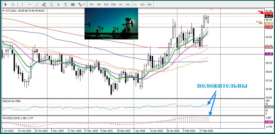Но риск вооруженного столкновения между США и Ираном, напротив, подталкивает нефтяные цены к росту. Встреча переговоров между США и Ираном намечена на четверг в Женеве, после представления Ираном подробного ядерного предложения. Чиновники называют эти переговоры как последний дипломатический шанс, перед тем, как администрация Трампа рассмотрит возможность военных действий. Подобный сценарий чреват полномасштабным конфликтом, учитывая предупреждения Ирана о том, что любые атаки сделают все базы и активы противников в регионе, мишенью.