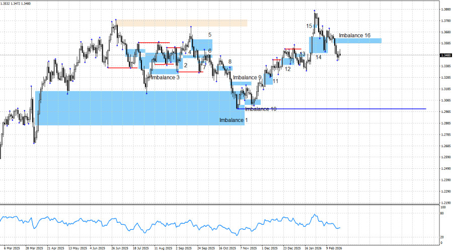 На мой взгляд, единственной причиной роста доллара в последние недели может быть готовность Дональда Трампа начать вторжение в Иран. В том, что это будет именно вторжение, а не простая военная операция, не сомневается уже никто. Если раньше речь шла о ликвидации ядерных объектов (похоже, прошлогодняя операция не была успешной), то сейчас – о смене власти в стране и полном уничтожении «преступного режима». Для того, чтобы провести подобных масштабов операцию, потребуется больше времени, чем на захват Мадуро в Венесуэле. В Персидский залив продолжают прибывать американские военные корабли и авианосцы, поэтому в ближайшие две недели Иран может вспыхнуть самым сильным огнем за последние десятилетия. На фоне этой гипотезы рынок может искать убежища для своих капиталов, а доллар для многих все еще остается понятной и безопасной валютой. «Бычий» тренд по британцу в любом случае сохраняется. Таким образом, до тех пор, пока он сохраняется (выше уровня 1,3012), я бы больше внимания уделял «бычьим» сигналам. Падение британца может быть достаточно сильным, но может и закончиться в любой момент. В любом случае единственный рабочий на текущий момент имбаланс 16 пока не образовал никакого сигнала. Таким образом, оснований для новых сделок в данное время нет. Информационный фон в понедельник отсутствовал и для британца, и для американца. В течение дня движения на рынке были достаточно слабыми, если принять во внимание информационный фон конца прошлой недели. Однако этот новостной набор был фактически проигнорирован, так как в прошлую пятницу мы также не увидели сильных движений на рынке. В США общий информационный фон остается таковым, что ничего, кроме падения американца, в долгосрочном плане ожидать нельзя. Ситуация в США остается достаточно сложной. Статистика по рынку труда США продолжает разочаровывать чаще, чем радовать. Последние три заседания FOMC из четырех завершились принятием «голубиного» решения. Военная агрессия Трампа, угрозы в адрес Дании, Мексики, Кубы, Колумбии, Ирана, стран ЕС, Канады и Южной Кореи, возбуждение уголовного дела против Джерома Пауэлла, очередной «шатдаун» и скандал с элитой США по делу Эпштейна прекрасно дополняют текущую картину политического и структурного кризиса в стране. На мой взгляд, у быков есть все, чтобы продолжать наступление в течение всего 2026 года. Для «медвежьего» тренда нужен сильный и стабильный для американца позитивный информационный фон, которого при Дональде Трампе сложно ожидать. Да и самому президенту США не нужен дорогой доллар, так как торговый баланс в этом случае останется дефицитным. Поэтому в «медвежий» тренд по британцу я по-прежнему не верю. Слишком много факторов риска остается висеть мертвым грузом на долларе. От «медвежьих» паттернов можно рассмотреть открытие сделок на продажу, но лично я бы этого не советовал трейдерам. Считаю последнее падение пары в некоторой степени случайностью. Календарь новостей для США и Великобритании: США – Изменение числа занятых ADP (недельный) (13-15 UTC). 24 февраля календарь экономических событий содержит в себе только одну далеко не самую важную запись. Влияние информационного фона на настроение рынка во вторник будет крайне слабым или отсутствовать. Прогноз по GBP/USD и советы трейдерам: По британцу картина остается «бычьей», однако краткосрочная 