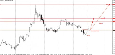 тестирует зону лонгового слома, от которой может пойти продолжение лонговой тенденции.Предлагаю рассмотреть лонговые позиции с отката на лонговый слом по схеме, представленной на скрине выше.