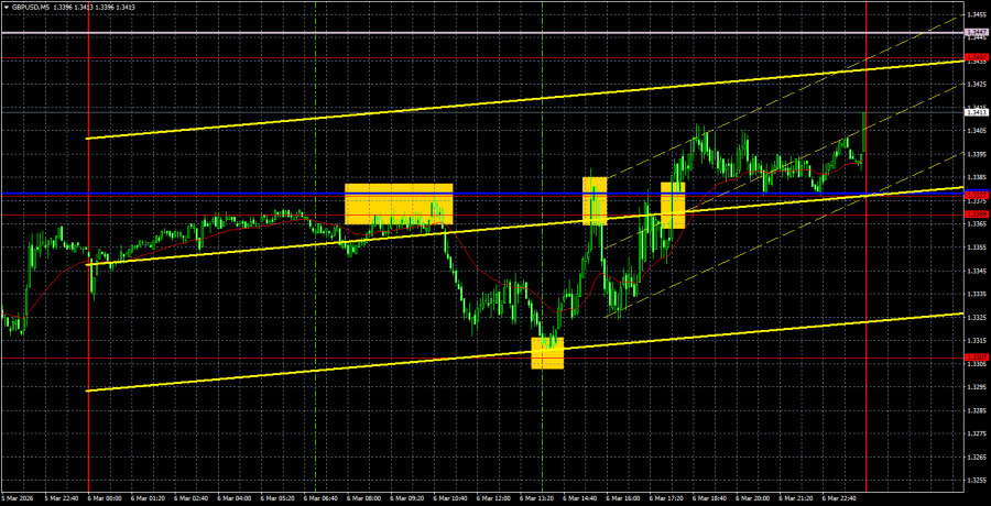 Торговые рекомендации и разбор сделок по GBP/USD на 5 марта. Фунт проехался на тракторе.