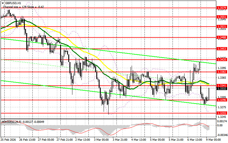 В прошлую пятницу было образовано несколько точек входа в рынок. Давайте посмотрим на 5-минутный график и разберемся с тем, что там произошло. В своем утреннем прогнозе я обращал внимание на уровень 1.3382 и планировал от него принимать решения по входу в рынок. Рост в район 1.3382 произошел, но до теста этого уровня не хватило буквально пары пунктов. Во второй половине дня ложный пробой в области 1.3341 дал точку входа на продажу с движением на 30 пунктов, после чего аналогичная точка входа была образована в районе 1.3382, что привело к падение пары на 60 пунктов.Для открытия длинных позиций по GBP/USD требуется:Сокращение числа рабочих мест в несельскохозяйственном секторе США сразу на 92 000 и рост безработицы до 4,4% в феврале этого года – все это оказало давление на американский доллар в прошлую пятницу и привело к росту GBP/USD. Однако сегодня давление на пару вернулось, чему виной усиливающийся геополитический конфликт на Ближнем востоке. Учитывая, что по Великобритании сегодня нет никакой статистики, скорей всего пара продолжит торговаться в рамках канала, с больше вероятностью дальнейшего падения. Первого проявления покупателей ожидаю увидеть лишь в районе поддержки 1.3296, образованной по итогам сегодняшнего дня. Лишь формирование там ложного пробоя приведет к хорошей точке входа в длинные позиции с восстановлением к уровню 1.3341. Прорыв и обратный тест сверху вниз этого диапазона увеличат шансы на укрепление GBP/USD, что приведет к сносу стоп-приказов продавцов и подходящей точке входа в длинные позиции с возможностью выхода к 1.3382, где ожидаю уже более активного проявления медведей. Самой дальней целью будет область 1.3420, где собираюсь фиксировать прибыль. Тест этого уровня остановит развитие медвежьего тренда. При сценарии снижения GBP/USD и отсутствия активности со стороны покупателей на 1.3296, что более вероятно, давление на пару вернется, что приведет к движению в район следующей поддержки 1.3255 – месячному минимуму. Лишь формирование там ложного пробоя будет подходящим условием на открытие длинных позиций. Покупать GBP/USD сразу на отскок собираюсь от минимума 1.3215 с целью коррекции в 30-35 пунктов внутри дня.Для открытия коротких позиций по GBP/USD требуется:Продавцы сегодня сделали все возможное, чтобы вернуть рынок под свой контроль. Однако в текущих условиях продавать лучше всего на коррекциях, так как пара все еще не вышла за пределы бокового канала. Лишь формирование ложного пробоя в районе ближайшего сопротивления 1.3341 станет точкой входа на продажу GBP/USD с целью снижения к поддержке 1.3296. Прорыв и обратный тест снизу вверх этого диапазона нанесут более крупный удар по позициям покупателей, приведя к сносу стоп-приказов и открыв путь к месячному минимуму 1.3255, где ожидаю уже более активного проявления быков. Самой дальней целью выступит область 1.3215, где буду фиксировать прибыль. При варианте роста GBP/USD и отсутствия активности на 1.3341, где проходят средние скользящие, играющие на стороне медведей, покупатели попытаются добиться более крупной коррекции, получив шанс на восстановление в район 1.3282. Открывать там короткие позиции собираюсь также лишь на ложном пробое. При отсутствии движения вниз и там я буду продавать GBP/USD сразу на отскок от 1.3420, но лишь в расчете на коррекцию пары вниз на 30-35 пунктов внутри дня.Рекомендую для ознакомления:В COT-отчете (Com