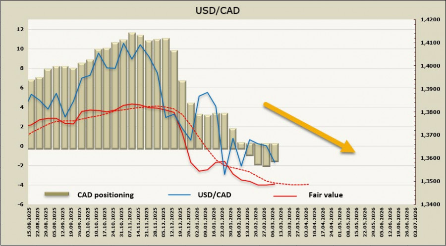 Исходим из того, что пока экономика Канады не настолько восстановилась, чтобы ожидать укрепления CAD, поскольку инфляция стабильна на уровнях чуть выше 2%, и не требует активного вмешательства Банка Канады. В то же время нарастают признаки замедления экономики США, что явно отражают последние отчеты по рынку труда, это бычий фактор для луни, а также растет угроза для глобального энергетического рынка, что еще более бычий фактор для канадца. В совокупности это дает более бычью, чем медвежью картину для канадской валюты. Чистая длинная позиция по CAD сократилась за отчетную неделю на 474 млн, до 1,539 млрд, спекулятивное позиционирование все еще бычье, но перевес незначителен. В свою очередь, расчетная цена потеряла динамику, хотя продолжает оставаться ниже долгосрочной средней.