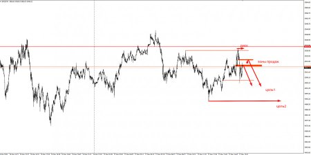 тестирует зону шортового слома, от которой может пойти продолжение шортовой тенденции.Предлагаю рассмотреть шортовые позиции с отката на шортовый слом по схеме, представленной на скрине выше.