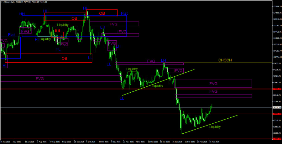 Торговые рекомендации по Биткоину(Bitcoin) на 15 марта по системе ICT.