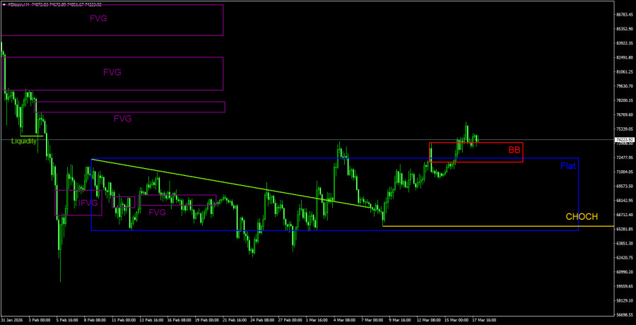 Торговые рекомендации по Биткоину(Bitcoin) на 18 марта по системе ICT.