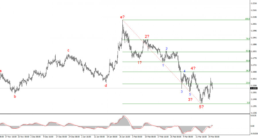 Анализ EUR/USD. 20 марта. Радость евро не была долгойВолновая картина по EUR/USD: