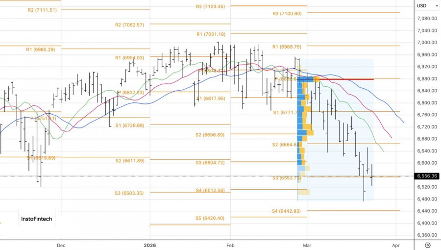 Пока слишком рано открывать шампанское. Несмотря на ободряющие новости с Ближнего Востока о переговорах, вооруженный конфликт продолжается. Ракеты Ирана попали в Тель-Авив, Саудовская Аравия думает присоединиться к коалиции США и Израиля, а Вашингтон собирается отправить в регион около 3000 солдат из элитной 82-й воздушно-десантной дивизии. Наземная операция не исключена, что заставляет S&P 500 нажать на тормоза после разгона на ожиданиях быстрой сделки. Динамика американских фондовых индексов