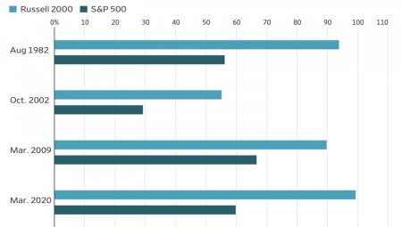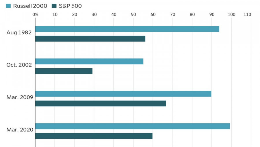 Инвесторы теряют уверенность в быстром завершении конфликта на Ближнем Востоке, и фондовые индексы один за одним уходят на территорию коррекции. Первым это сделал Russell 2000, за ним последовал Nasdaq Composite. Очередь за S&P 500, который отметился худшим дневным падением с января на фоне нежелания Ирана идти на предлагаемые США переговоры. И Вашингтон, и Тегеран выдвигают максималистские требования, куда большие, чем до начала боевых действий. Это заставляет сомневаться, что противники найдут общий язык. Время работает не на рынок американский акций. Каждый день войны в Иране поддерживает цены на нефть на высоком уровне, что усиливает риски замедления экономики США и в конечном итоге рецессии. Неудивительно, что первым на территорию коррекции ступил именно Russell 2000. Компании малой капитализации чутко реагируют на состояние экономики. Признаки ее охлаждения заставляют инвесторов продавать долевые бумаги. Динамика фондовых индексов после спадов