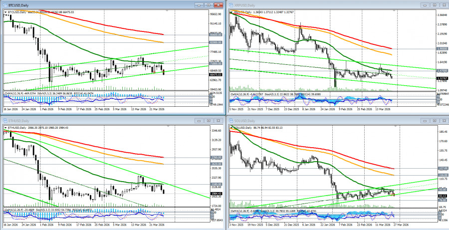 *см. также: Торговые индикаторы InstaForex по BTC В последние недели биткоин (BTC/USD) демонстрировал неопределённость, торгуясь в узком диапазоне после сильной волатильности конца?2025 – начала?2026?года. BTC недавно тестировал уровни около 70000.00–73500.00, но не смог закрепиться выше, отражая баланс между давлением и попытками восстановления. В моменте крупное событие рынка — истечение опционов на сумму около 18,6?млрд долларов — заставило трейдеров пересмотреть позиции, что усилило краткосрочную волатильность. В таких случаях часто наблюдается переход от тренда к боковому движению, поскольку опционы «сжигают ликвидность». Однако последние данные также показали резкий рыночный отскок: после паузы в ударах по Ирану BTC прибавил несколько тысяч долларов, что указывает на чувствительность рынка к геополитике и спрос на риск?активы. Март же 2026 года войдет в историю крипторынка как период фундаментального сдвига парадигмы, говорят эксперты крипторынка. Биткоин, завершая последнюю неделю месяца ниже важного сопротивления 71900.00 (ЕМА50 на дневном графике BTC/USD) и торгуясь в первой половине американской торговой сессии пятницы в районе 67000.00–66000.00, все же демонстрирует парадоксальную устойчивость: с начала ближневосточного конфликта 28 февраля первая криптовалюта подорожала почти на 8%, в то время как золото потеряло более 15%. Некоторые криптоаналитики поспешили признать биткоин «тихой гаванью», подчеркивая его растущую роль в условиях экономической и геополитической нестабильности. Биткоин обгоняет золото, но вопросы остаются Между тем, геополитическая пауза не принесла ясности. В начале недели президент Трамп объявил о продлении срока для переговоров с Ираном до 6 апреля, назвав прошедшие консультации «конструктивными». Однако оптимизм оказался недолгим. Иранские официальные лица опровергли факт прямых переговоров, выдвинув условия, включающие полный контроль над Ормузским проливом и выплату репараций. Инвесторы опасаются неожиданной эскалации в выходные, подобной той, что произошла 28 февраля, когда удары США и Израиля застали рынки врасплох. На этом фоне участники рынка продолжают наблюдать беспрецедентное явление: с начала войны в Иране биткоин демонстрирует чистые притоки капитала и рост активности, в то время как ETF на золото потеряли около 11 млрд долларов за три недели марта. Эксперты крипторынка объясняют это несколькими факторами: