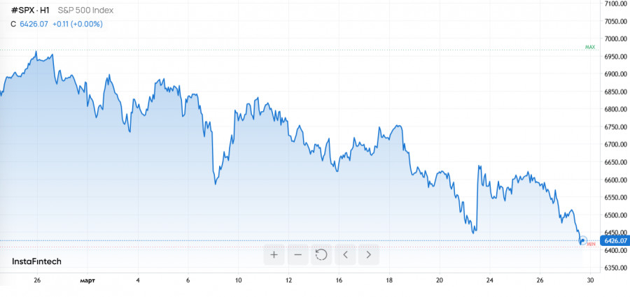 В четверг на Уолл-стрит произошла самая резкая однодневная коррекция с начала конфликта вокруг Ирана. Причиной стали рост цен на нефть и заметное угасание надежд на прекращение огня. В пятницу давление продаж перекинулось на мировые рынки: Китай начал ответные торговые расследования против США, а Израиль предупредил, что удары по Ирану будут «нарастать и расширяться».В четверг индекс S&P 500 снизился на 1,7%, закрывшись на уровне 6 477,16 пункта – это минимум с сентября. При этом показатель оказался на 7,2% ниже исторического максимума, достигнутого ранее в этом году.Промышленный Dow Jones потерял 469 пунктов, или 1%. Nasdaq Composite упал на 2,4%, опустившись более чем на 10% ниже своего пика и официально войдя в зону коррекции. Индекс движется к пятой подряд неделе снижения – это самая длинная серия падений за почти четыре года.Распад надежд на дипломатическое урегулирование поддержал распродажу. Иран отклонил предложение США о прекращении огня, переданное через Пакистан, сообщает NBC News со ссылкой на материал The Street.После закрытия торгов президент Дональд Трамп продлил установленный им срок для Ирана по возобновлению судоходства через Ормузский пролив на 10 дней, до 6 апреля. Он заявил, что переговоры «идут очень хорошо».На этом фоне рынок продолжил закладывать нефтяные риски. В пятницу фьючерсы на нефть марки Brent поднялись выше $110 за баррель: как сообщает Anadolu Agency, инвесторы учитывают вероятность затяжных перебоев. CNBC уточняет, что майский контракт на Brent вырос до $110,94.Главные выводы Рынок показывает классический сценарий "усиления риска": геополитическая неопределенность подпитывает рост нефти, а ухудшение ожиданий по перемирию провоцирует распродажи акций. Дополнительный фон — напряженность в торговых отношениях (инициативы Китая против США) и риторика Израиля в отношении Ирана, что повышает нервозность по всему спектру активов.Для извлечения выгоды необходимо:1) оценивать реакцию нефтяных фьючерсов (Brent) как индикатора риска и использовать это для подтверждения сценариев по фондовому рынку;2) искать точки входа в моменты ускорения волатильности (при подтверждении тренда/пробоя уровней на индикаторах и графике);3) применять риск-менеджмент (ограничение размера позиции и постановка стоп-ордеров), так как на таких новостных циклах движения часто резкие.Торговые инструменты, связанные с описанными событиями, доступны для торговли на InstaForex. Чтобы работать с рынком еще удобнее, откройте торговый счет на платформе InstaForex, а для мобильного доступа скачайте мобильное приложение компании.Золото отыгрывает потери: Трамп продлил переговорное окно с Ираном, но инфляционные риски сохраняются
