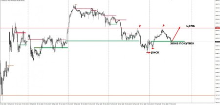 Итак, после мощной лонговой инициативы азиатской сессии инструмент перешёл к шортовой коррекции и в настоящий момент тестирует зону лонгового слома, от которой может пойти продолжение лонговой тенденции.Предлагаю рассмотреть лонговые позиции с отката на лонговый слом по схеме, представленной на скрине выше.