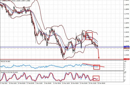 Пара евродоллар остается под прессингом на фоне увеличения спроса на государственные облигации США на фоне ближневосточного кризиса, где уже в ближайшие дни может произойти эскалация в виде наземной операции США против Ирана. Как все это будет выглядеть, покажет время, но ясно одно, что рост цен на нефть будет поддерживать спрос на доллар, как и ожидание сохранения денежной политики ФРС в ближайшем обозримом будущем с риском повышения ставок к концу текущего года. На этом фоне стоит ожидать продолжения плавного укрепления доллара на рынке Форекс. С технической точки зрения пара упала ниже уровня 1.1500, что может привести ее к локальному снижению до конца текущей недели. Техническая картина и торговая идея: