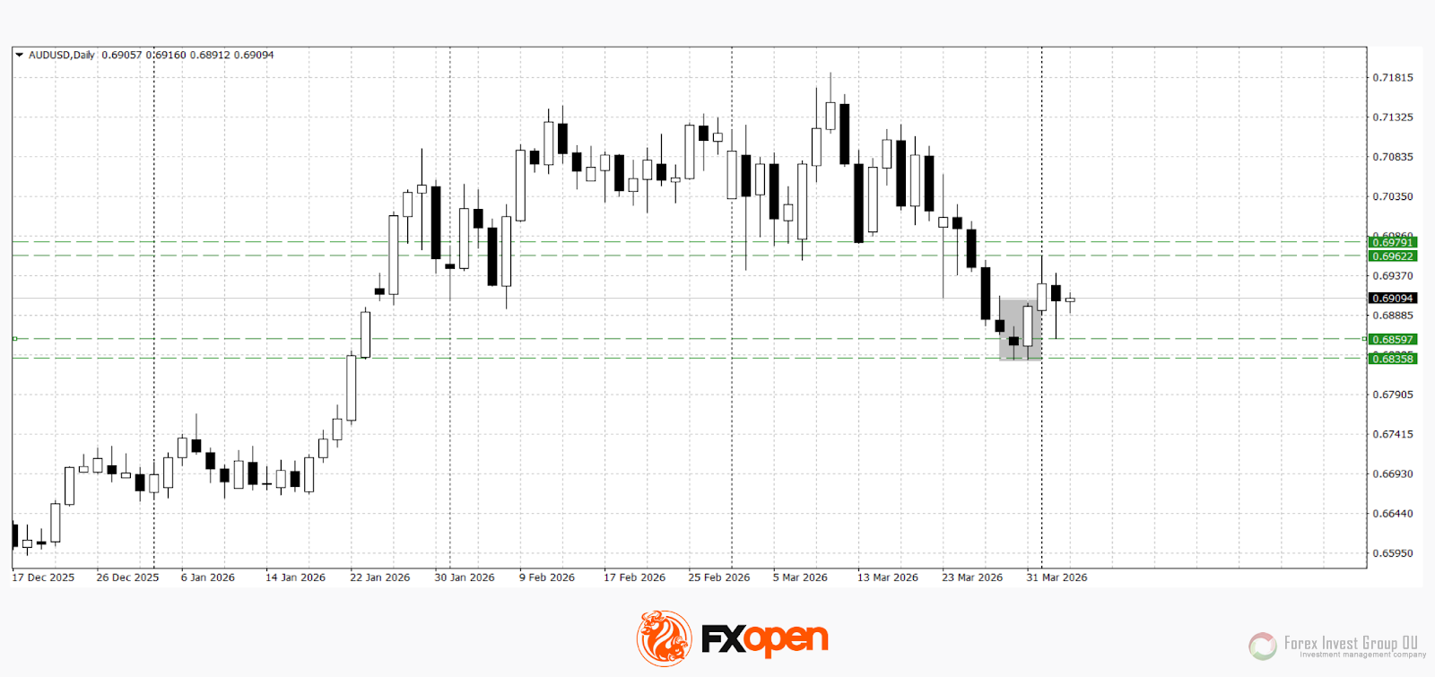 FxSignal 4-04-2026, 08:00 26 Аналитика, прогнозы валютного рынкаСырьевые валюты переходят в фазу консолидации после недавних направленных движений, тогда как участники рынка занимают выжидательную позицию перед публикацией ключевых данных по рынку труда США. Текущая динамика отражает баланс между сохраняющимся спросом на доллар и попытками коррекционного восстановления на фоне неопределенности фундаментального фона.