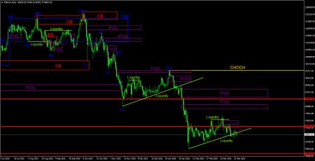 CHOCH – слом трендовой структуры. Liquidity – Ликвидность, Stop Loss трейдеров, которые маркет-мейкеры используют для набора своих позиций. FVG – Область ценовой неэффективности. Цена очень быстро проходит такие области, что указывает на полное отсутствие одной из сторон на рынке. В последствии цена имеет свойство возвращаться и получать реакцию от таких областей. IFVG – Инвертированная область ценовой неэффективности. После возврата к такой области, цена не получает от нее реакцию, а импульсно пробивает, а затем тестирует ее с другой стороны. OB – Ордер-блок. Свеча, на которой маркет-мейкер открывал позицию с целью забора ликвидности для формирования собственной позиции в противоположном направлении.Материал предоставлен компанией InstaForex - www.instaforex.comНовость предоставлена компанией