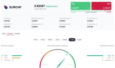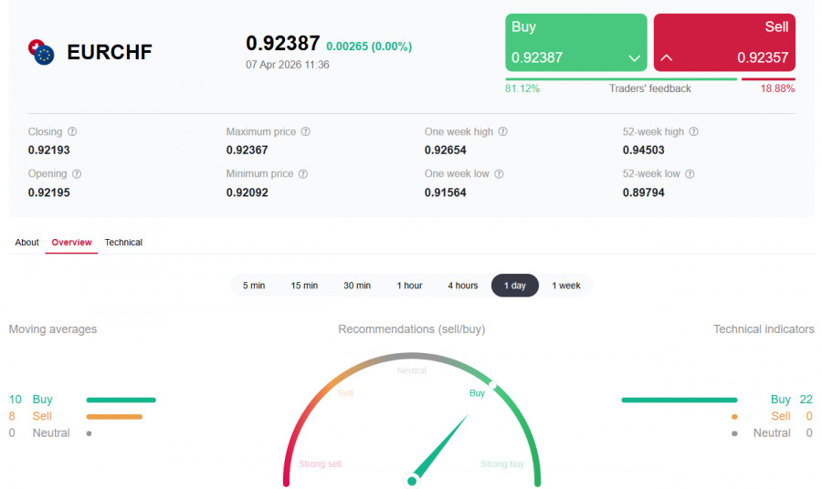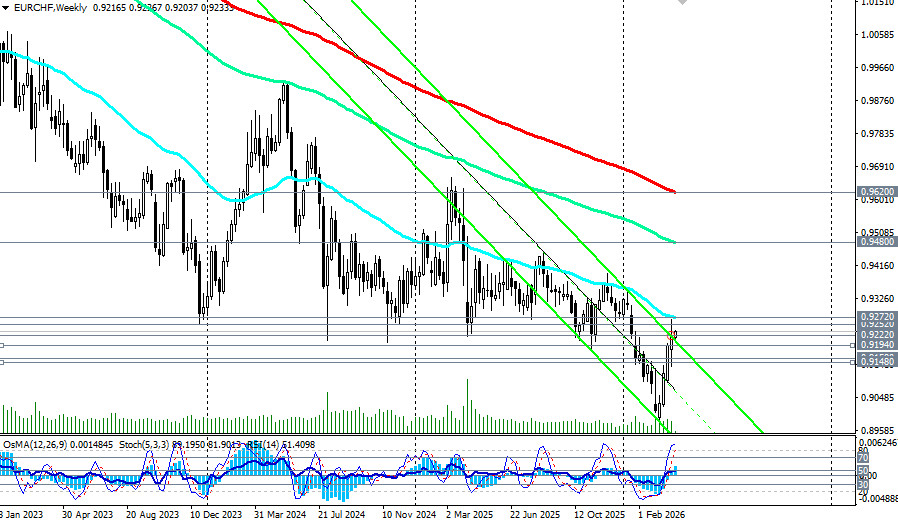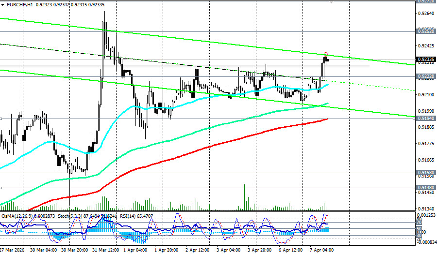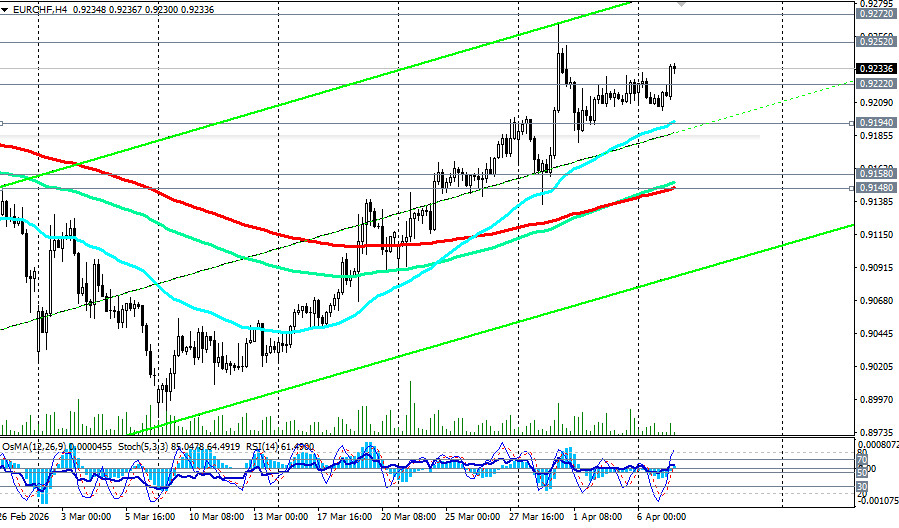 *см. также: Торговые индикаторы InstaForex по EUR/CHF Пробив в конце 2008 года ключевой стратегический уровень поддержки 1.5250 (200-периодная скользящая средняя на месячном графике), пара EUR/CHF двигается в зоне глобального медвежьего рынка. Тем не менее после достижения в начале марта 2026 года локального многолетнего минимума около 0.8980, пара нашла в себе силы несколько подправить значительно пошатнувшиеся с 2009 года позиции и укрепиться примерно на 2,3%, поднявшись к текущему моменту в зону ключевых уровней сопротивления 0.9222 (144-периодная скользящая средняя на дневном графике)-0.9252 (200-периодная скользящая средняя на дневном графике), отделяющих среднесрочный медвежий рынок от бычьего. С одной стороны, мы видим рекордно низкую инфляцию в Швейцарии, позволяющую местному регулятору сохранять мягкую политику. С другой - растущее геополитическое давление и неоднозначные сигналы из Европы. Разбираемся, какие факторы удерживают пару в равновесии и что станет катализатором следующего движения. Швейцария: низкая инфляция как фундамент стабильности Ключевой новостью для франка стали данные по мартовской инфляции. Годовой показатель потребительских цен (CPI) в Швейцарии поднялся до 0,3% - это максимум за последний год. Однако данный рост, как отмечается в отчете национального бюро статистики, связан, в основном, с удорожанием услуг и продуктов питания, в то время как энергетический сектор демонстрирует стабильность благодаря умеренным колебаниям цен на нефть и газ. Главный вывод для рынка заключается в том, что инфляция остается критически ниже целевого диапазона национального банка Швейцарии (SNB) в 2,0%. Это развязывает регулятору руки. Внутренняя ситуация не требует повышения ставок, и SNB может удерживать их в диапазоне 1,00-1,25% по основным инструментам рефинансирования. Такая комбинация - низкая инфляция + мягкая монетарная политика - создает устойчивую базу для экономического восстановления и поддержки экспортного сектора. Более того, наличие «подушки безопасности» в виде низкого CPI позволяет SNB активнее бороться с чрезмерным укреплением франка, не опасаясь разогнать инфляцию. Европа: смешанные сигналы и «ястребиный» настрой ЕЦБ В то время как Швейцария борется с дефляционными рисками, Европейский центральный банк демонстрирует противоположный настрой.