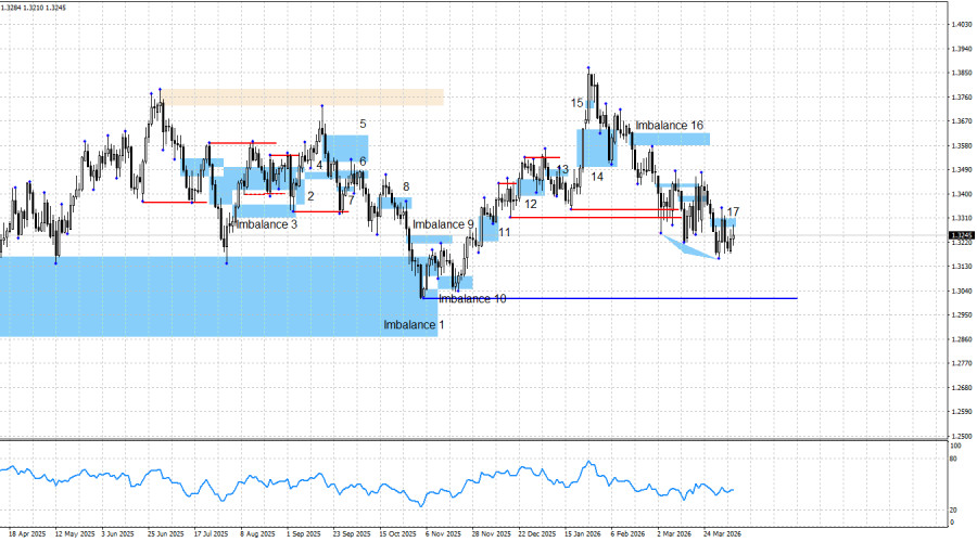 Пара GBP/USD в понедельник вновь начала процесс роста. Цена на прошлой неделе выполнила отбой от имбаланса 17, образовав, таким образом, сигнал на продажу. Однако ранее был образован более сильный сигнал на покупку в виде «Three drives pattern», а тренд остается «бычьим». Помимо этого, сегодня может образоваться «бычий» сигнал по евровалюте, который может оказать благоприятное влияние и на быков по британцу. Графическая картина сейчас крайне противоречивая, как и многие другие события и факторы. В пятницу отчеты Nonfarm Payrolls и уровень безработицы должны были вызвать новые атаки медведей. Не вызвали. В понедельник Дональд Трамп сообщил, что разнесет Иран в пух и прах во вторник, если Ормузский пролив не будет открыт. Доллар вновь не показал рост. Индекс деловой активности ISM в секторе услуг США проигнорирован. Ситуация неоднозначная, трейдеры затаились в преддверии новой информационной бомбы.
