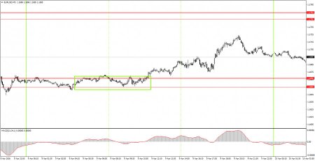 1) Сила сигнала считается по времени, которое потребовалось на формирование сигнала(отскок или преодоление уровня). Чем меньше времени потребовалось, тем сильнее сигнал. 2) Если около какого-либо уровня были открыты две или больше сделки по ложным сигналам, то все последующие сигналы от этого уровня следует игнорировать. 3) Во флэте любая пара может формировать массу ложных сигналов или же не формировать их вовсе. Технические уровни могут игнорироваться. 4) На часовом ТФ по сигналам от индикатора MACD желательно торговать только при наличие хорошей волатильности и тренда, который подтверждается линией тренда или трендовым каналом. 5) Если два уровня расположены слишком близко друг к другу(от 5 до 20 пунктов), то следует рассматривать их, как область поддержки или сопротивления. 6) При прохождении 15 пунктов в верном направлении следует выставить Stop Loss в безубыток.Что на графиках: