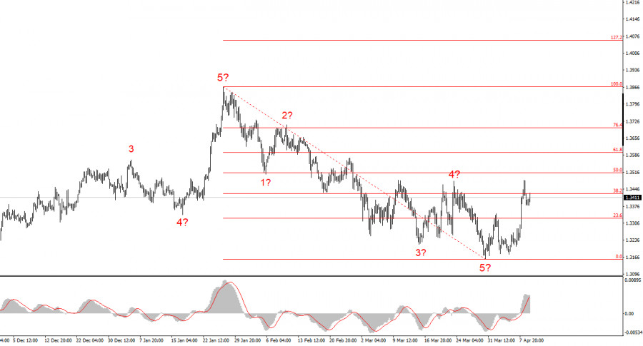 Исходя из проведенного анализа EUR/USD, я делаю вывод, что инструмент остается в рамках повышательного участка тренда(нижняя картинка), а в краткосрочном плане – в рамках коррекционной структуры. Коррекционный набор волн выглядит вполне завершенно и может получить более сложный, протяженный вид только в одном случае – если между Ираном, США, Израилем и ВСЕМИ остальными странами на Ближнем Востоке установится стойкое перемирие. В противном случае, я считаю, что с текущих позиций может начаться построение нового понижательного набора волн.Волновая картина по GBP/USD: