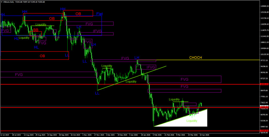 Торговые рекомендации по Биткоину(Bitcoin) на 11 апреля по системе ICT