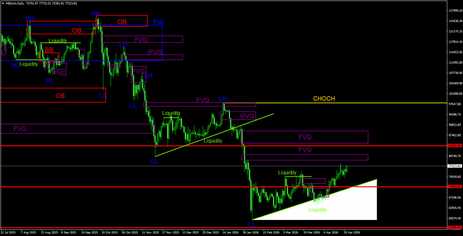 Торговые рекомендации по Биткоину(Bitcoin) на 22 апреля по системе ICT